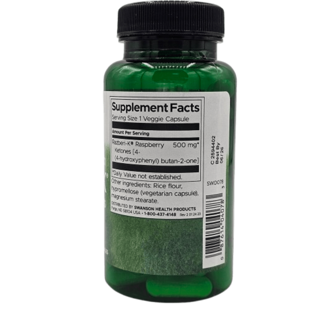 Maximum Strength Razberi-K Raspberry Ketones de Swanson es un suplemento poderoso y concentrado que utiliza 500mg de cetonas de frambuesa por cápsula, una de las sustancias más populares y naturales para el apoyo al control de peso. Con su fórmula de alta potencia, este producto está diseñado para apoyar la quema de grasa, aumentar los niveles de energía y mejorar el metabolismo. Las cápsulas vegetarianas de fácil digestión son perfectas para quienes buscan incorporar los beneficios de las cetonas de frambuesa en su rutina diaria de manera práctica y efectiva.